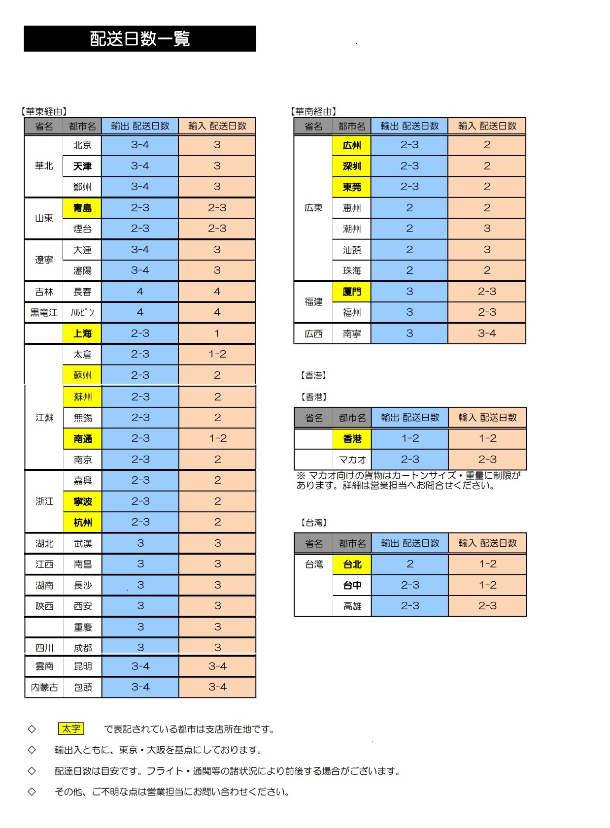 日本から中国・香港・台湾へ